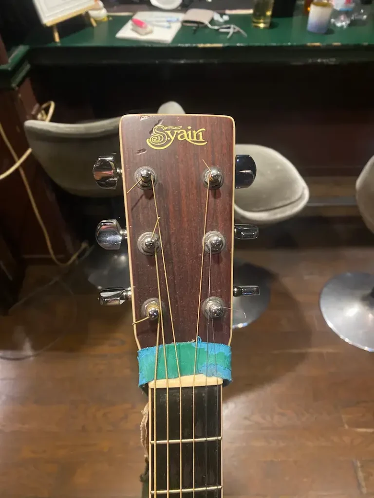 The owner always complains about being broke, but suddenly he’ll buy something nice. This guitar was just hanging on the wall one day out of nowhere. As someone who’s unbeatable at buying cheap stuff, I thought, “Whoa, it’s a Yairi!” and started to see him in a new light.